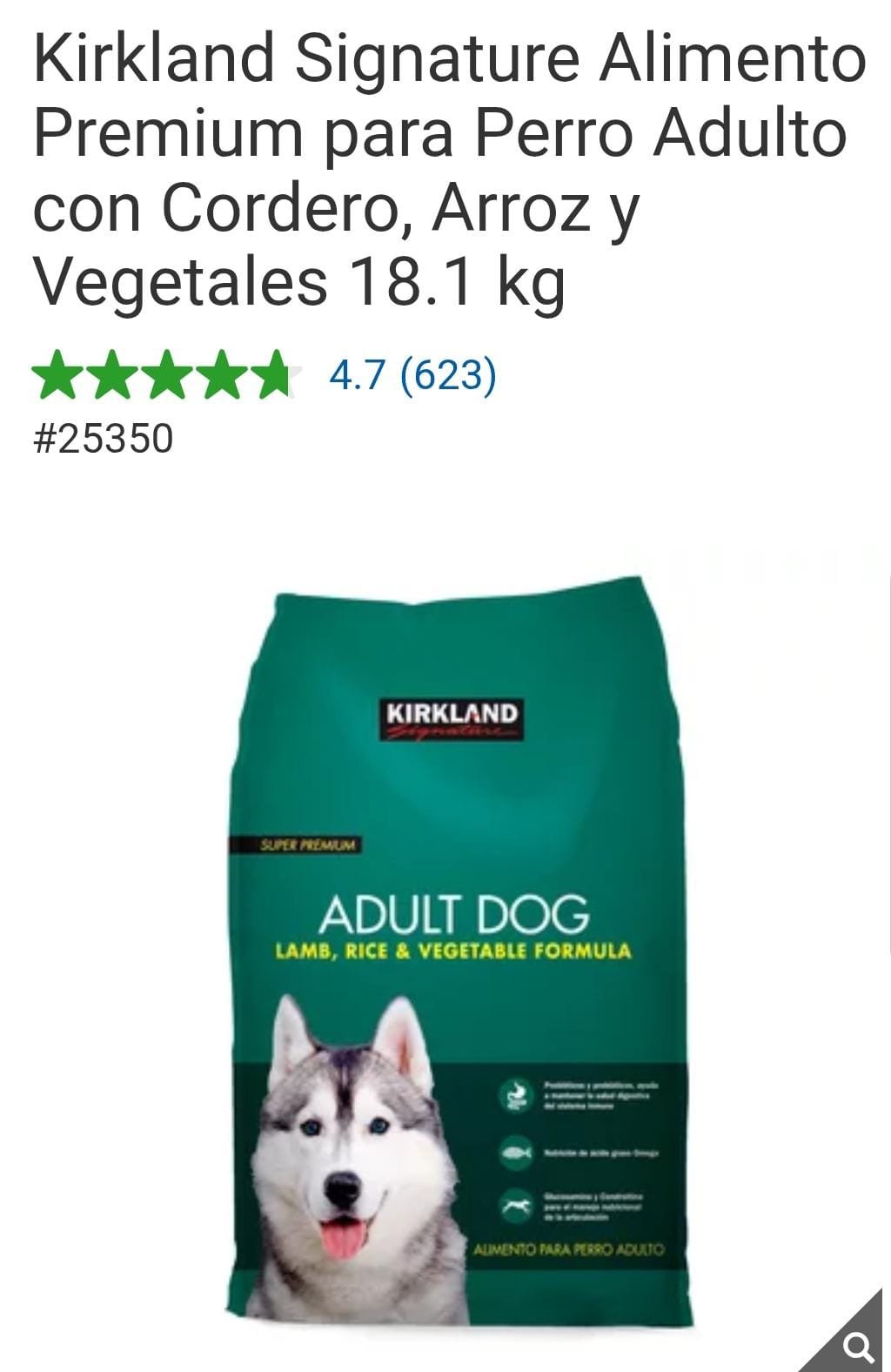 ALIMENTO PERRO ADULTO CORDERO/ARROZ 18.1 KG KIRKLAND SIGNATURE cantidad
