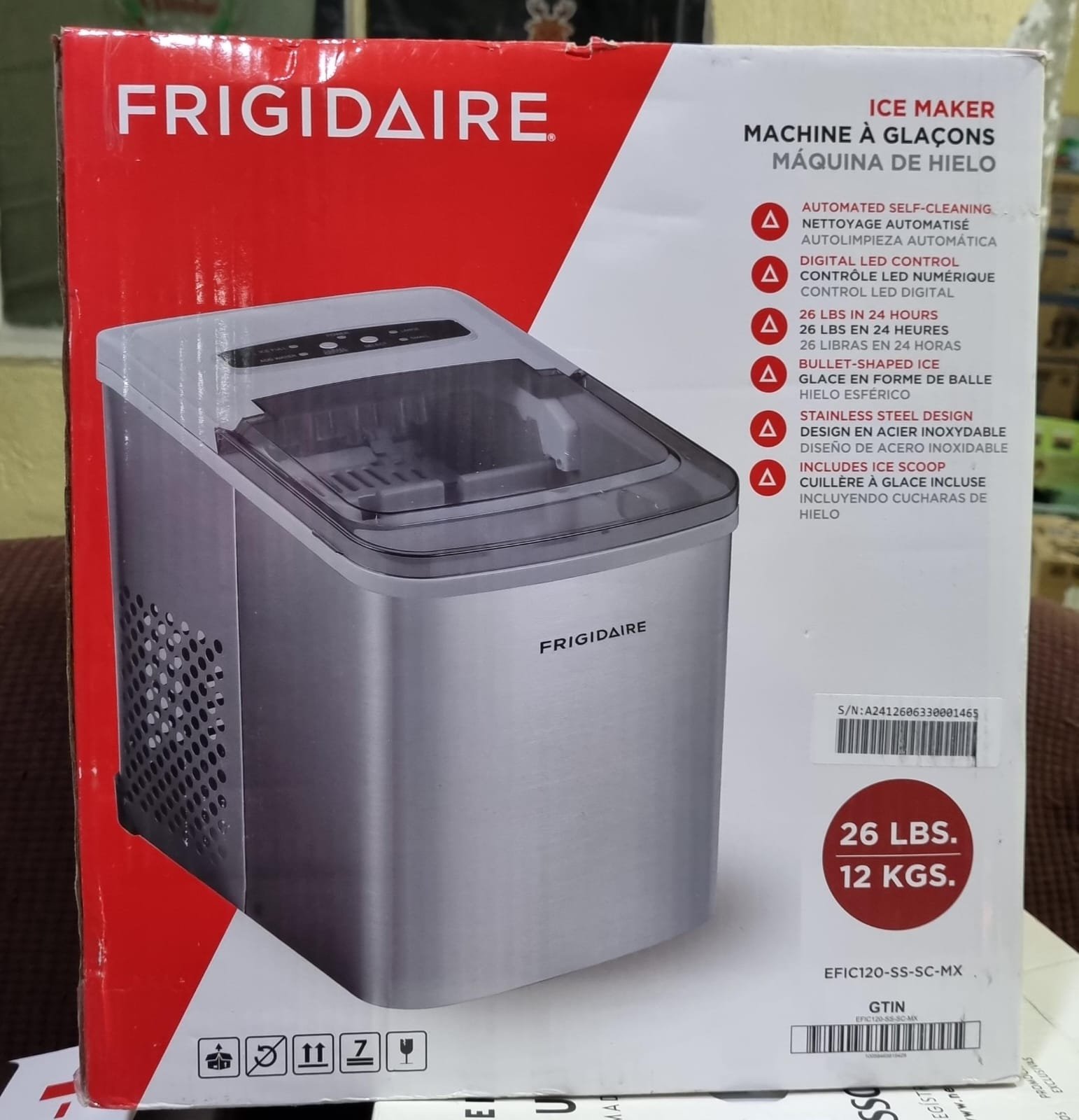 MÁQUINA DE HIELO 12 KG POR DIA FRIGIDAIRE